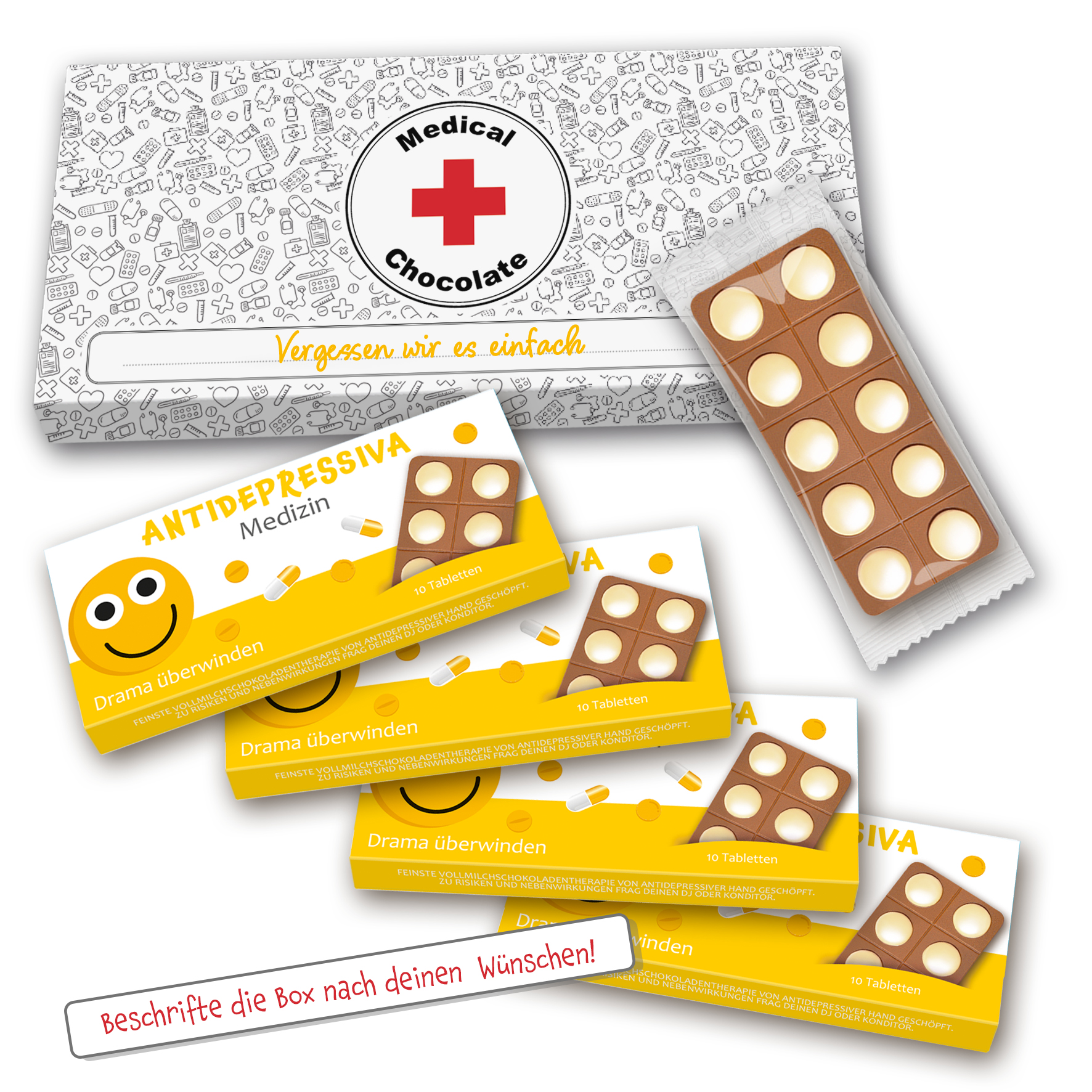 4 x Schokotafel aus handgeschöpfter Edelvollmilch-Schokolade mit mindestens 32% Kakao, in bedrucktem Karton verpackt.