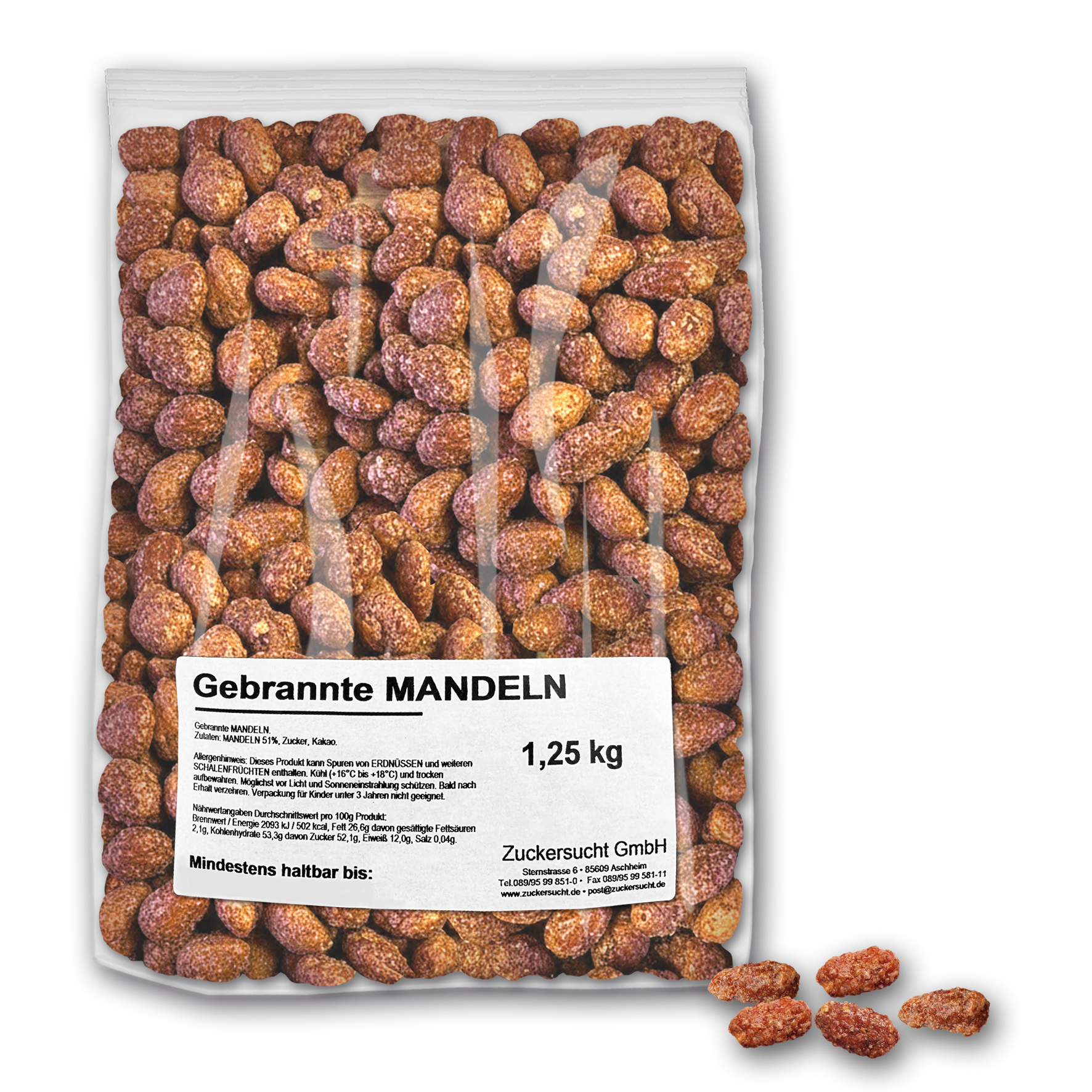 Gebrannte Mandeln 1,250 kg wie vom Jahrmarkt original von Hand auf offener Flamme gebrannt und karamellisiert. Ein Hochgenuss aus unserem Hause