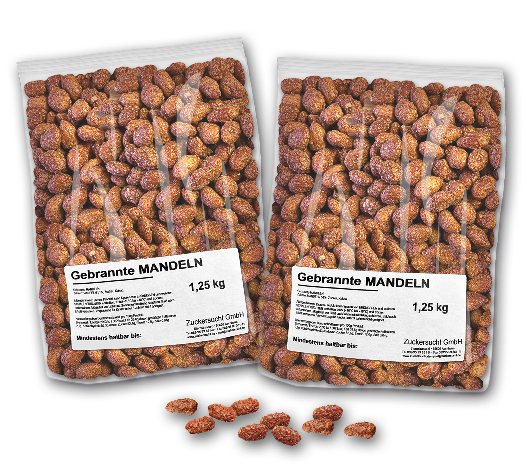 Gebrannte Mandeln 2,5 kg wie vom Jahrmarkt original von Hand auf offener Flamme gebrannt und karamellisiert. Ein Hochgenuss aus unserem Hause