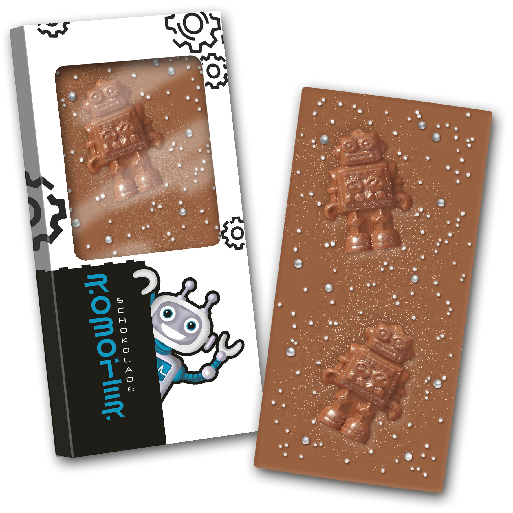 Schokotafel aus handgeschöpfter Edelvollmilch-Schokolade mit mindestens 32% Kakao, einzeln in bedrucktem Karton verpackt.