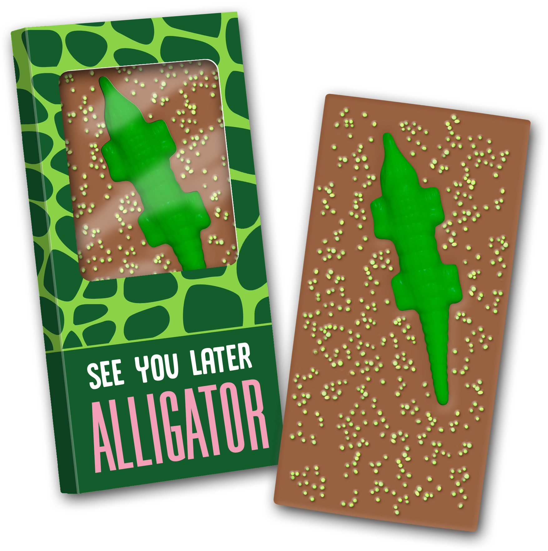 Wunderbar geeignet als Geburtstagsgeschenk, Schokoladengeschenk, Überraschung, Geschenk, Schokoladentafel mit Krokodil, See you later, Alligator